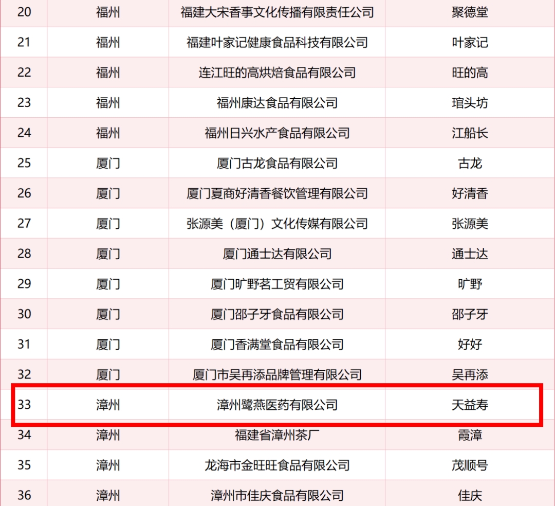4月29日,福建省商務廳正式發布了第七批“福建老字號”認定名單,鷺燕醫藥旗下“天益壽”成功入選,被認定為“福建老字號”。這是繼“天益壽”榮獲漳州老字號稱號之后,再次榮獲省級認定。
