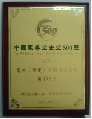 鷺燕集團(tuán)近日捷報頻傳,在剛剛榮獲了“2007廈門企業(yè)100強(qiáng)”之后,再次躋身于“中國服務(wù)企業(yè)500強(qiáng)”之列。我集團(tuán)已連續(xù)兩年獲此殊榮。